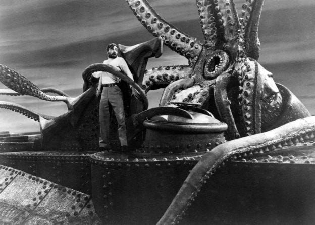Yeah, giant squids and octopi still scare me. Because I still have a ridiculously overactive imagination, and it doesn’t give a third shake on a windy day about what I intellectually know regarding monsters and reality.